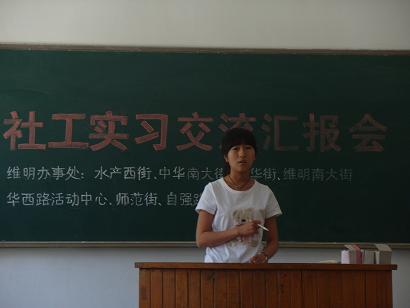 到昨天为止,07级社会工作专业的学生为期两周的实习圆满结束。24个学生被分配到石家庄桥西区维明街道办事处下属的七个居委会(自强路居委会、水产西街居委会、维明南大街居委会、师范街居委会、华西路居委会、中华南大街居委会和泰华街居委会),协助居委会工作人员入户登记、调解纠纷、整理档案、登录资料等。这次实习活动,极大提高了居委会的办事效率,同时也提高了学生们的实践能力,对本专业有了更深一步的认识。
