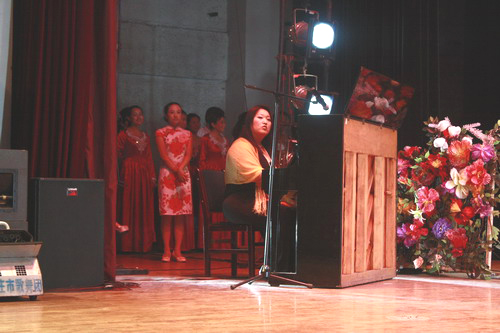 第二环节是红歌比赛。在红歌会现场,每个歌唱方队精神饱满,井然有序,台上台下交相呼应,歌声嘹亮,此起彼伏。我院合唱队的《中华女儿》,更是得到了评委和现场观众的高度评价