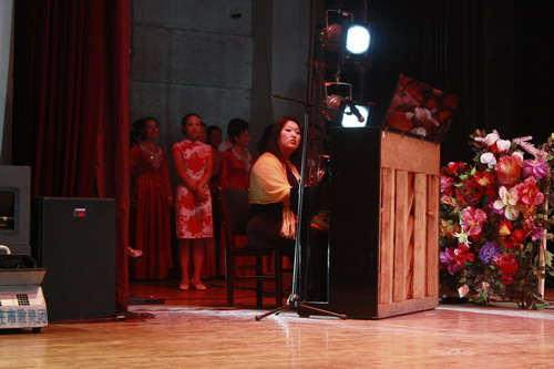 第二环节是红歌比赛。在红歌会现场,每个歌唱方队精神饱满,井然有序,台上台下交相呼应,歌声嘹亮,此起彼伏。我院合唱队的《中华女儿》,更是得到了评委和现场观众的高度评价。
