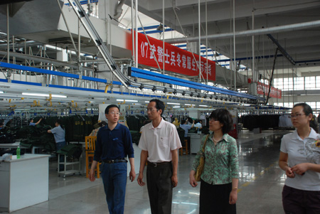 2009年5月8日,我院领导王振杰院长在艺术设计系李彦琴主任、服装教研室徐超主任的陪同下,一行几人赴际华三五零二职业装有限公司参观调研。在调研过程中,学院领导王振杰院长、艺术设计系李彦琴主任还亲临学生的实习车间,并与他们亲切交谈。在相互交流中,企业领导给与了我院就职学生高度评价。此次参观调研活动配合企业,加强了校企双方的合作管理,为我院“订单式人才培养”计划的进一步实施奠定了基础。