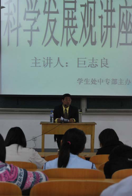 2009年3月19日晚7:00在图书馆206教室,中专部举办了中专生科学发展观讲座,由巨志良老师主讲。