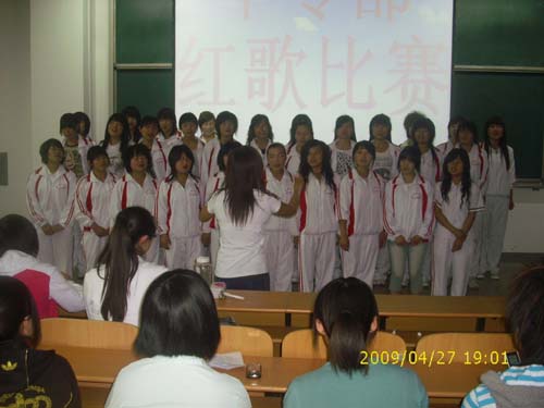 于4月24日晚7:00在图书馆107展开了选拔赛,邀请学院团委五评委参加。07、08级四个班级中07中一在比赛中选题好,声音洪亮,指挥领唱等方面比较突出,最终在院团委五名评委评判下获得第一名。为学院的决赛提前做好了红歌比赛的选拔工作。
