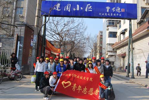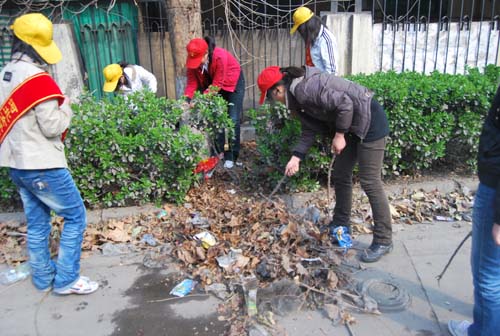 2009年4月21日下午两点,中专团总支组织40多名青年志愿者走进建国小区,活动时间3个小时,分三组对清扫小区绿化地带的白色垃圾和废弃物,分五组清除小区内部墙壁小广告。