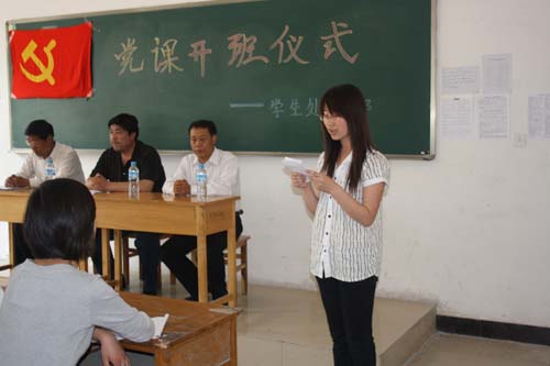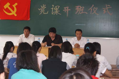 伴随着庄严地国歌,首届中专部党课培训班开班仪式正式开始。主持人任建鹏老师介绍了中专部学生积极向组织递交入党申请书的情况,其中22名学生光荣的参加了本次党课培训。