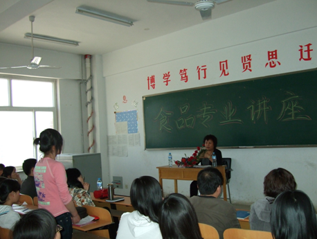 2009年4月21日14时,社会工作系食品教研室邀请洛杉奇食品有限公司的甄会岩厂长为食品专业学生开展了专业讲座活动。