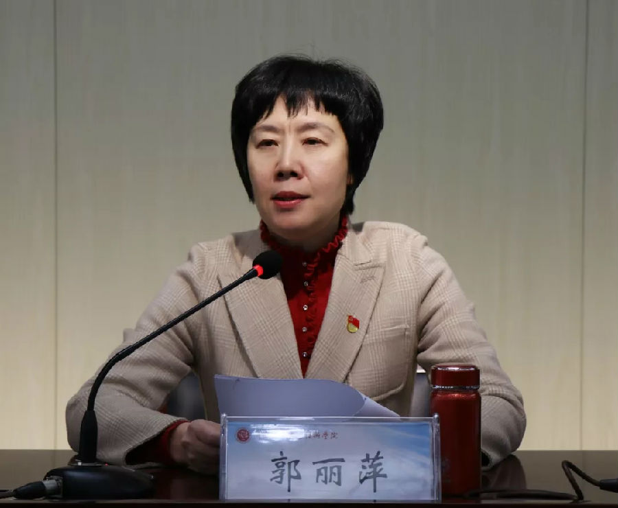 学院党委书记郭丽萍主持会议并作主题教育总结讲话