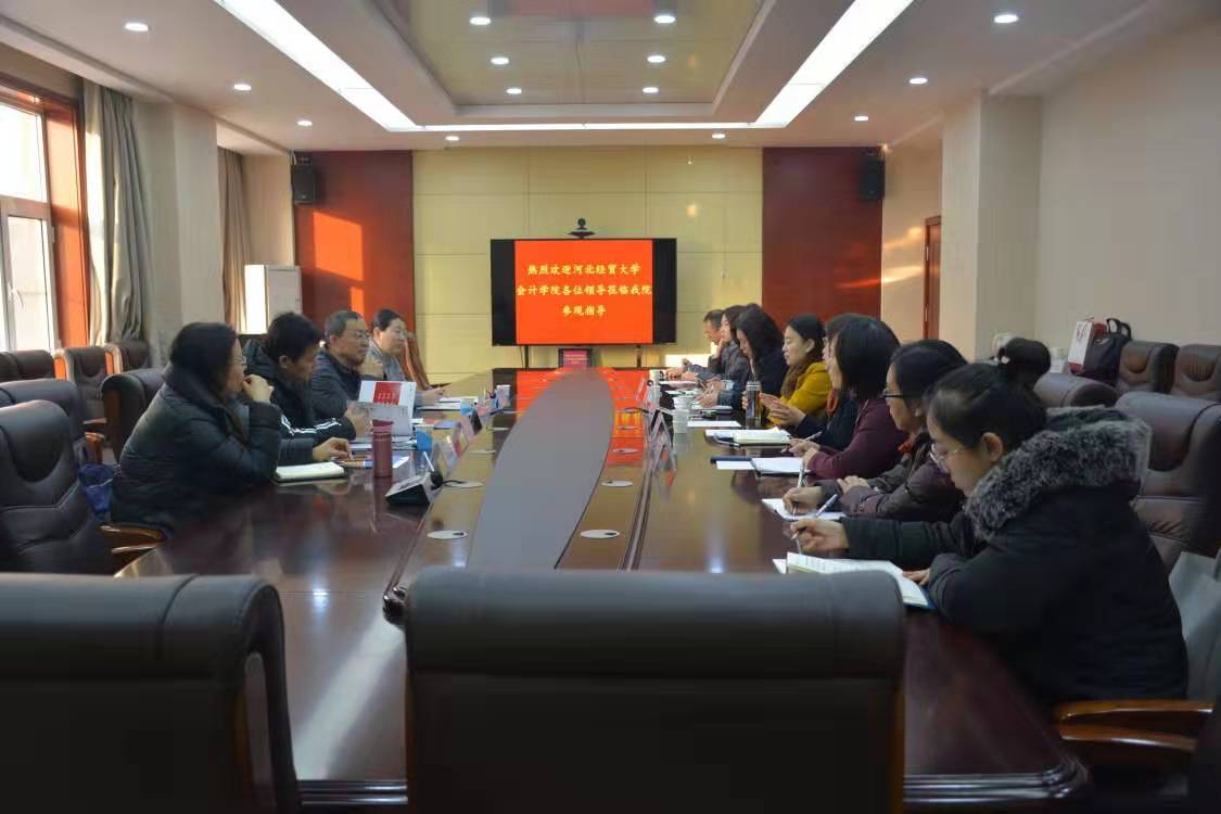 1月2日,河北经贸大学会计学院院长袁振兴、书记张霖、副院长杨国莉、系主任黄秋敏一行四人到学院考察交流。我院副院长徐爱新、教务处处长李桂荣、经济管理系主任安月辉及会计专业群相关教师等参加座谈交流。