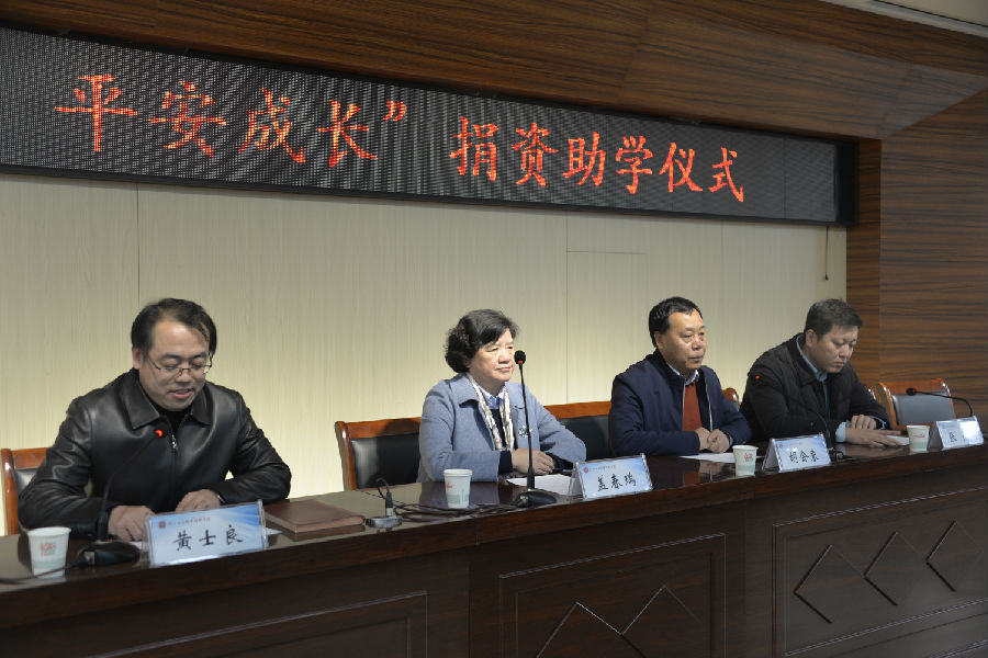 仪式上,学院院长盖春瑞为“授渔计划班”学生代表发放助学金并讲话。她介绍了项目的具体实施措施,阐述了“授渔计划·平安成长”项目对促进我省扶贫攻坚、助力贫困女生实现大学梦的现实意义,并对全体授渔计划班学生提出了殷切的希望,希望她们好好学习,做“四自”女孩,学有所成,报效祖国。