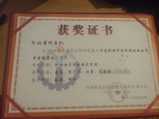 5月25日--26日,2019年全国职业院校技能大赛“市场营销技能”赛项在青岛酒店管理职业技术学院举行,来自全国30个省、市、自治区的86支代表队共计344名选手参加了本次比赛。我院经济管理系孙莉、何琳两名教师指导的王飞、李广志、刘蕾、冯晓欧组成的参赛队伍参加了此次比赛。