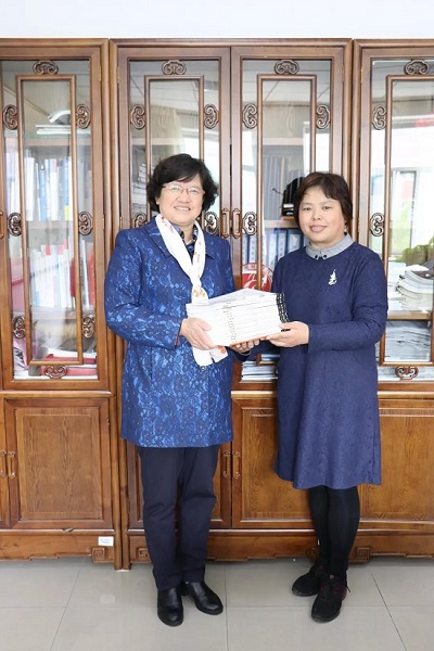 院长盖春瑞向图书馆捐赠书籍