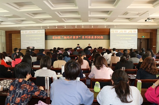 4月16日下午,省妇联在我院新思维报告厅举办河北省妇联相约“中国梦”第五十期系列讲座活动,邀请省体育学院、省公安厅特聘教授仇广信做了“现代女性情绪管理与健康促进”主题讲座。活动由省妇联副主席吕素维主持;学院院长盖春瑞、副院长董海鹰、纪委书记赵志华、副院长李彦琴出席了活动;省妇联干部及学院教工共150余人听取了讲座。