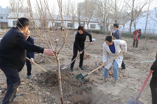 2019年3月23日是党中央离开西柏坡,“进京赶考”70周年纪念日。为践行“赶考精神”,引导广大党员“不忘初心、牢记使命”, 重温“两个务必”,强化“四个意识”, 3月23日,学院党委组织全体党员开展了始终牢记“两个务必”始终弘扬“赶考精神”暨“3·23赶考日—植树美化校园”活动。活动共分两个组,每组植树50棵,分别由党委书记郭丽萍、院长盖春瑞带队。