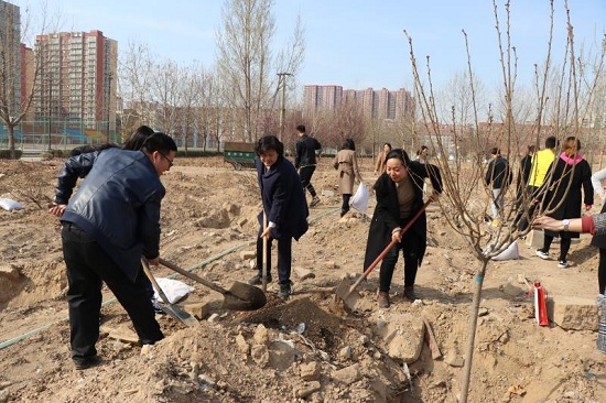 在植树活动现场,所有党员精神抖擞,充分发挥人民教师的奉献精神,分工协调、通力合作,有条不紊地完成挖坑、栽树、施肥、浇水、培土等各项工作。植树间隙,郭丽萍书记、盖春瑞院长与教职工边劳动、边交流,并叮嘱教职工:十年树木百年树人,女子学院广大教工要按照“立德树人”的理念,在教育好学生的同时,把树植好、扶正,搞好美化绿化工作,不断美化绿化校园环境,为广大师生提供更多安静惬意的教学环境。