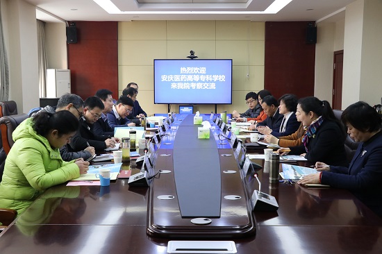 2019年3月1日,安庆医学高等专科学校校长李卫平、副校长李少军、朱庆丰等一行8人到我院考察交流。我院院长盖春瑞、副院长徐爱新会见了来宾,双方在行政楼会议室进行了座谈交流。两校相关职能部门负责人共同参加了座谈。
