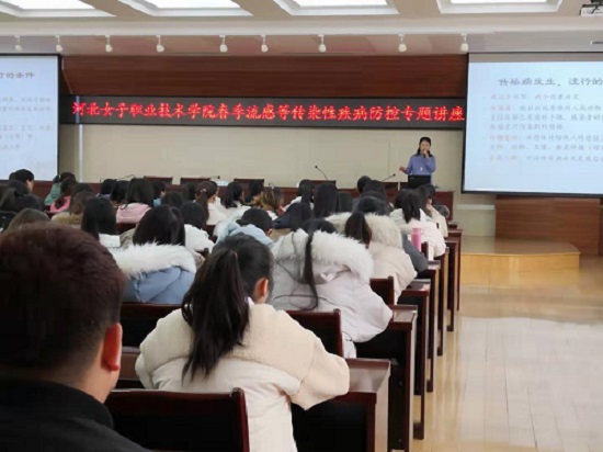 为进一步贯彻落实《教育部办公厅关于加强流感等传染病防控和学校食品安全工作的通知》要求,切实做好2019年春季流感等传染病防控工作,维护师生身体健康,2月26日,我院邀请石家庄市疾病控制中心传染性疾病控制专家张弘主任来院为师生作了“常见传染病防控知识专题讲座”。