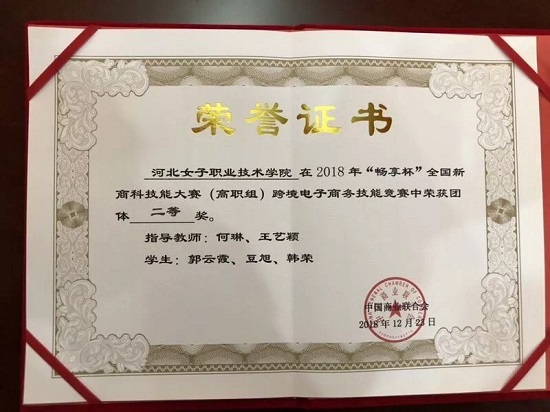 本项赛事包括跨境电子商务推广和跨境电子商务进出口实务两个环节,充分考察学生的跨境电商实战技能。我院经济管理系指导教师何琳、王艺颖带领由郭云霞、韩荣、豆旭三名同学组成的代表队参加了本次比赛,与来自全国66所高职院校的参赛队同台竞技,经激烈角逐,取得了团体二等奖的优异成绩。