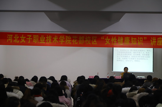 为贯彻落实省教育厅《关于进一步做好学校传染病防控工作的通知》和《关于认真做好2018年“世界艾滋病日”宣传教育活动的通知》的工作要求,进一步提高同学们对自身健康重要性的认识,增强自我保健意识和能力,养成良好的健康生活习惯,营造良好的校园健康环境,2018年12月7日下午,我院花都校区邀请石家庄市第五医院妇产科主任医师赵玉婵为师生作了“魅力女生、健康同行”女性健康知识讲座,花都校区270余名师生聆听了讲座。