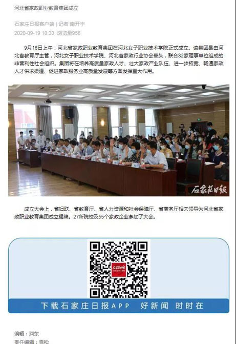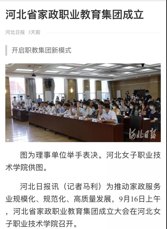 【媒体看女院】国家、省、市级9家媒体报道河北省家政职业教育集团成立